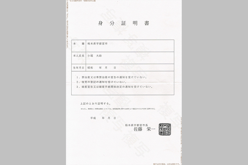 市町村が発行し、破産などの状態ではないことを証明する書類です。