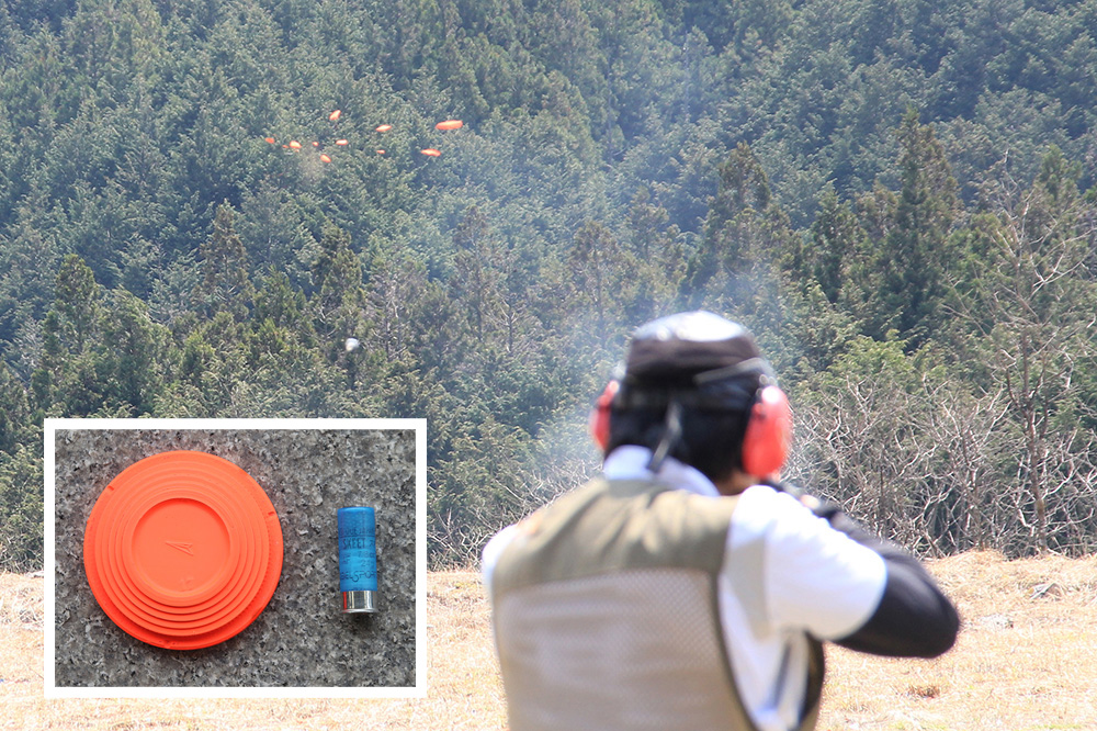 標的となるクレーは、割れやすい材質でできた直径約11cmの円盤です。散弾が当たると空中で砕け散ります。