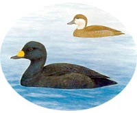海ガモの一種。沿岸などに生息し、特に外洋に面した急崖の海岸に多い。通常は、内陸の湖沼などでは見られない。主に動物食で、水中に潜水して水底の貝類などを食べる。オスはピー、クイ、メスはクルルルと鳴く。