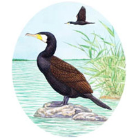 非狩猟鳥のウミウとは体型や体色などがよく似ていて識別が難しいが、カワウが淡水域を好むのに対し、ウミウは主に海域に生息する。
