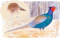 キジ(亜種のコウライキジを除く)は、北海道と沖縄を除き、全国的に分布。留鳥。国鳥とされている。亜種のコウライキジは中国・朝鮮半島原産の移入種。対馬と北海道に狩猟の対象として放鳥した結果、野化したもの。