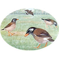 大きさはヒヨドリやツグミ類などに類似するが、暗褐色の地色と白色のほおと腰、明るいオレンジ色のくちばしが判れば特に識別に困ることはない。