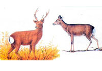 本州、四国、九州の各本島に分布するカモシカは非狩猟獣。雌雄ともに角があるが黒色で短く、分枝しない。